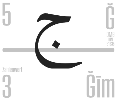 Der koran-arabische Buchstabe ج (Jim) im Abjad-28 Schriftsystem [1][2]
