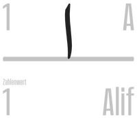 1. der erste von 28 koran-arabischen Buchstaben ا (Alif) im Abjad-28 Schriftsystem, die Konsonantenschrift der Lesung (Koran). [1] [2]