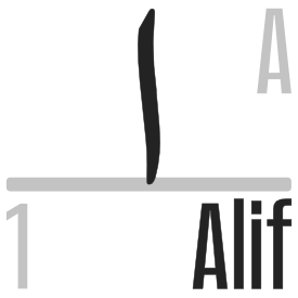 Der koran-arabische Buchstabe ا (Alif) im Abjad-28 Schriftsystem, die Konsonantenschirft der Lesung (Koran). [1][2]